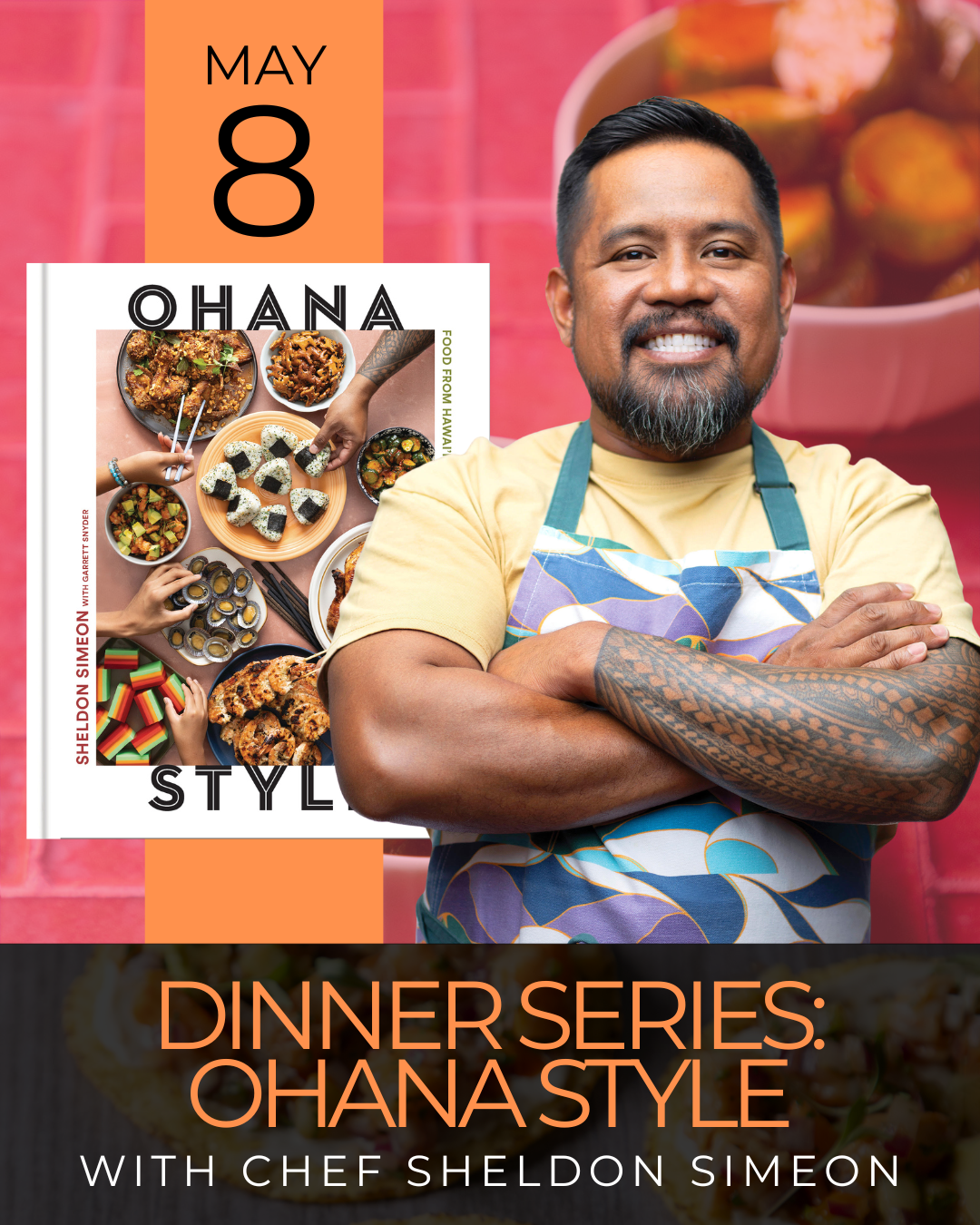 Hosted at The Shell—the culinary event space from The Fried Rice Collective—this intimate Cookbook Club–style dinner will feature a multi-course menu inspired by the flavors and stories from Sheldon’s latest book. Throughout the evening, Chef Simeon will share insights into the recipes, his culinary journey, and the spirit of Hawaiian cooking that defines his work.